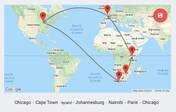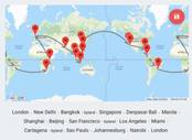 An around the world air route circumnavigates the globe, as illustrated in the map below.
